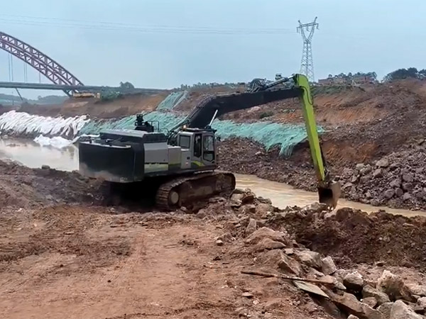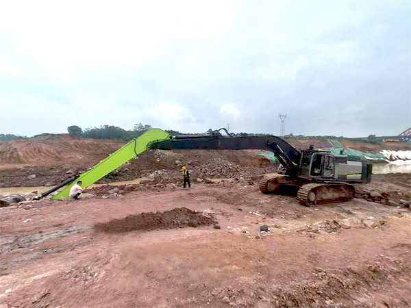 廣西平陸運河的建設自2022年8月28日實質性開工建設起算,到發稿時間有一年零9個月瞭(le)。這個世紀工程也有我司生産(chǎn)的挖機加長臂。