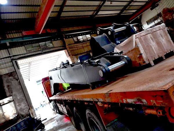 挖機加長(zhǎng)臂整車(chē)發往廣西平陸運河;