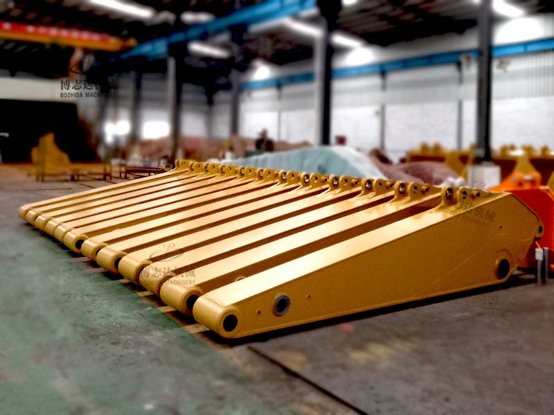 大臂術語動臂,小臂術語鬥杆。動臂、鬥杆适配於(yú)相應機型,以出廠标配參(cān)數爲基準。 我司可爲各種品牌挖掘機設計生産(chǎn)大小臂;通過專業的電腦輔助設計系統,從應力分析、材質選擇、技術工藝、設計制作等生産(chǎn)方面,環環嚴謹管控,保證瞭(le)産(chǎn)品的質量。臂内安裝有内部緩沖闆以承受張力負載,增強瞭(le)大小臂的結構強度以及使用性能。延長瞭(le)動臂鬥杆的使用壽命。